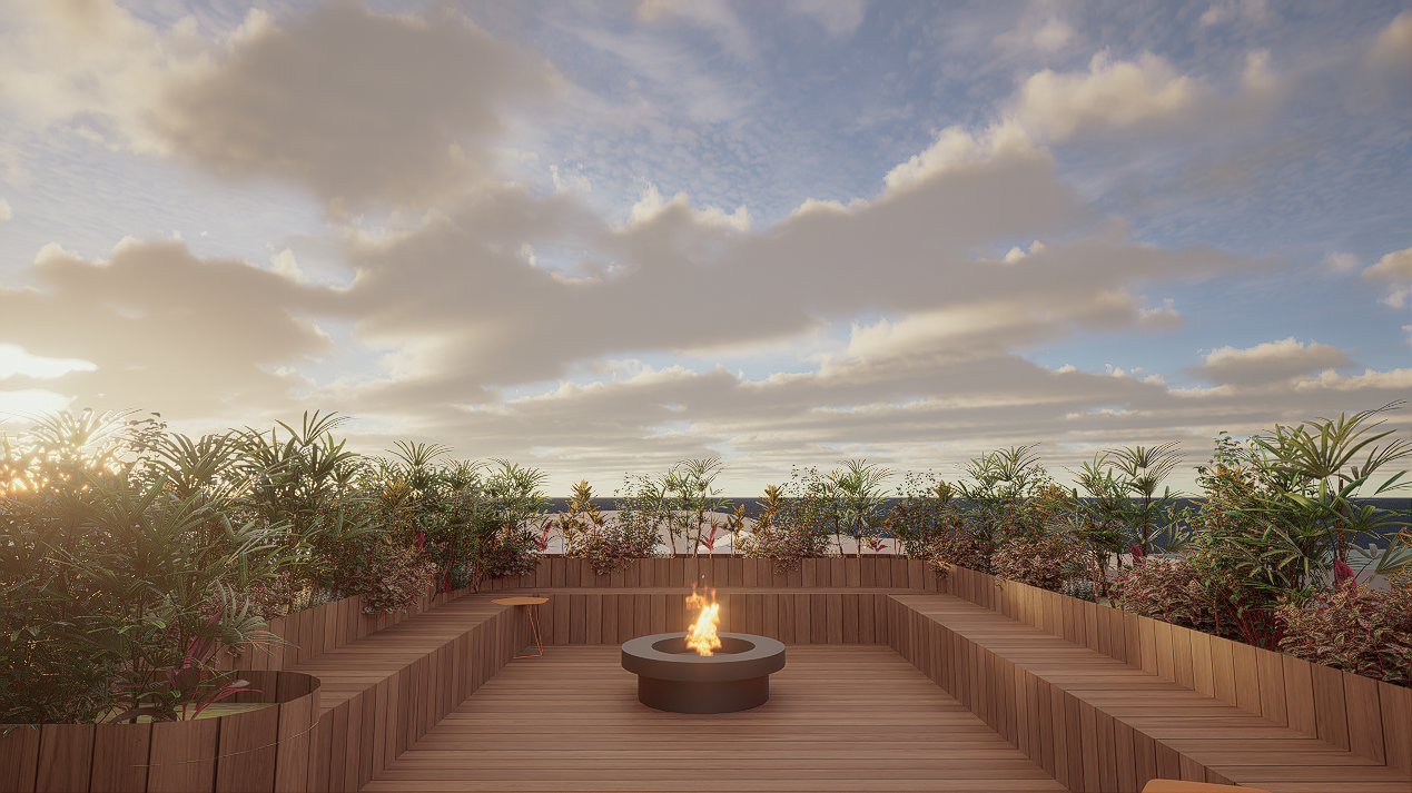 使われていなかった屋上は、新たにルーフトップラウンジとして再生しました。周囲の道路や駐車場など近景のノイズを低木の植栽で緩やかに遮り視線を導くことで、砂丘と日本海への眺望を楽しめる鳥取砂丘観光の新たな目的地となる場を作ります。