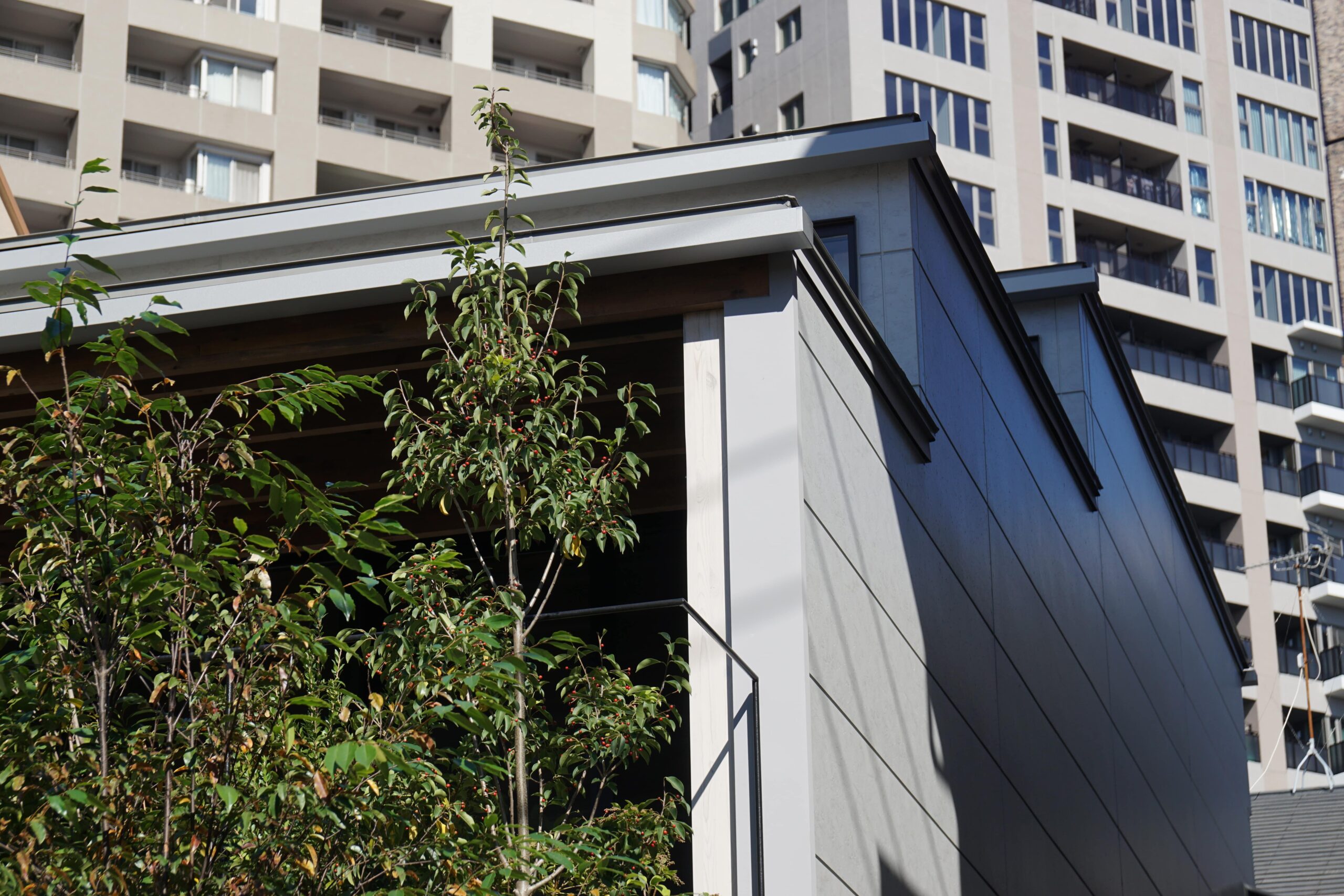 常緑樹主体とすることで住宅内部へのプライバシー性を確保しつつ、室内からは庭として機能し、周囲に対しても豊かな緑を感じさせる柔らかいファサードを作ります。