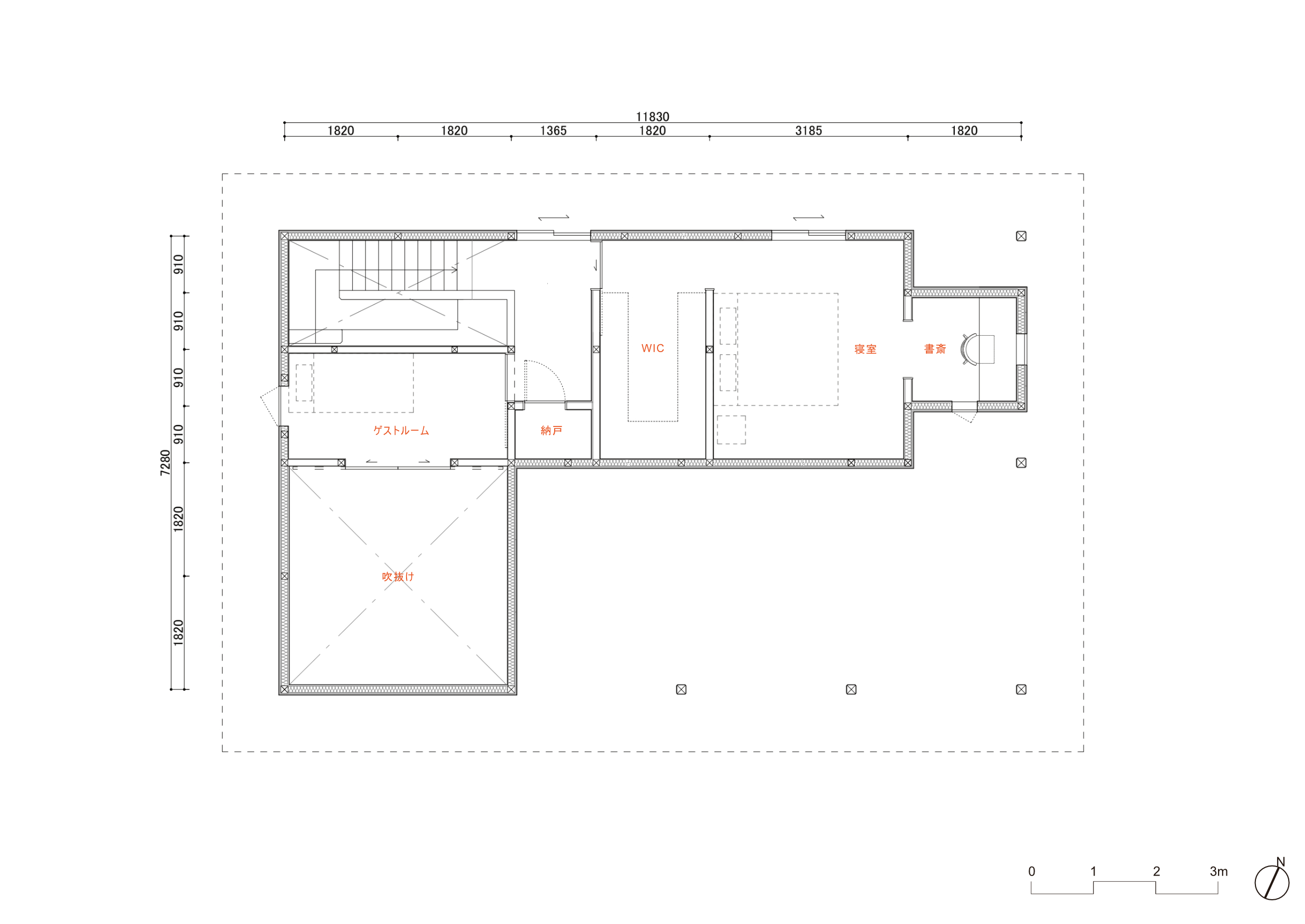 自然素材を活かしながら明るく上品な印象を与え、窓の外の緑が映える計画となるよう、素材は漆喰と杉板のみを使用して、ひとつひとつの面の切り替えを慎重に検討しています。